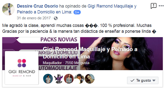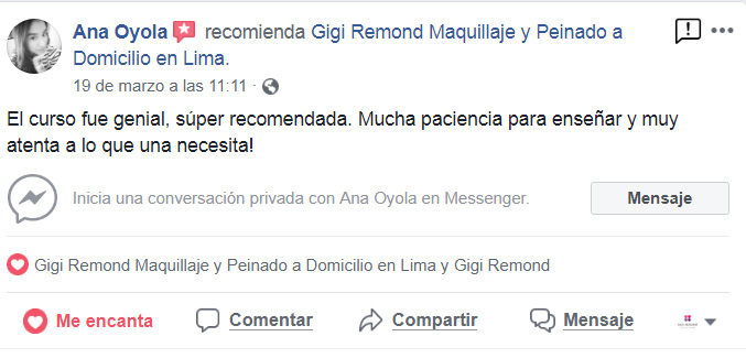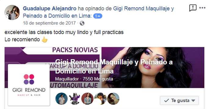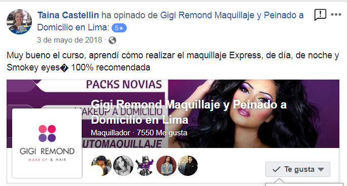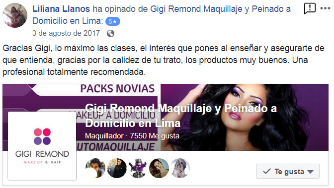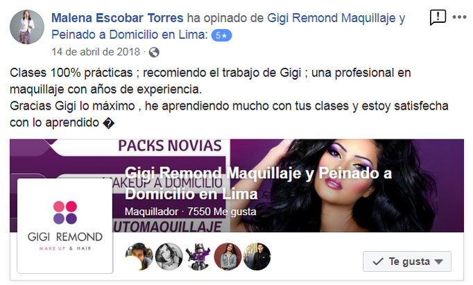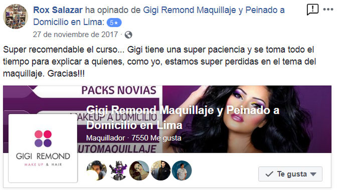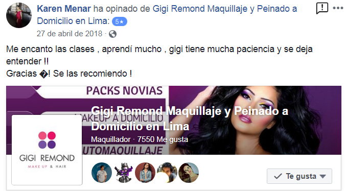 PROFESORA EXPERTA : Las clases son impartidas por Gigi Remond maquilladora profesional (con 18 años de experiencia en el rubro de la belleza)