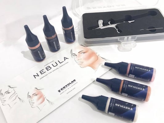 El aerógrafo que usamos es de la marca Kryolan y las bases Nebula (última tecnologia en aerografia HD a nivel mundial)