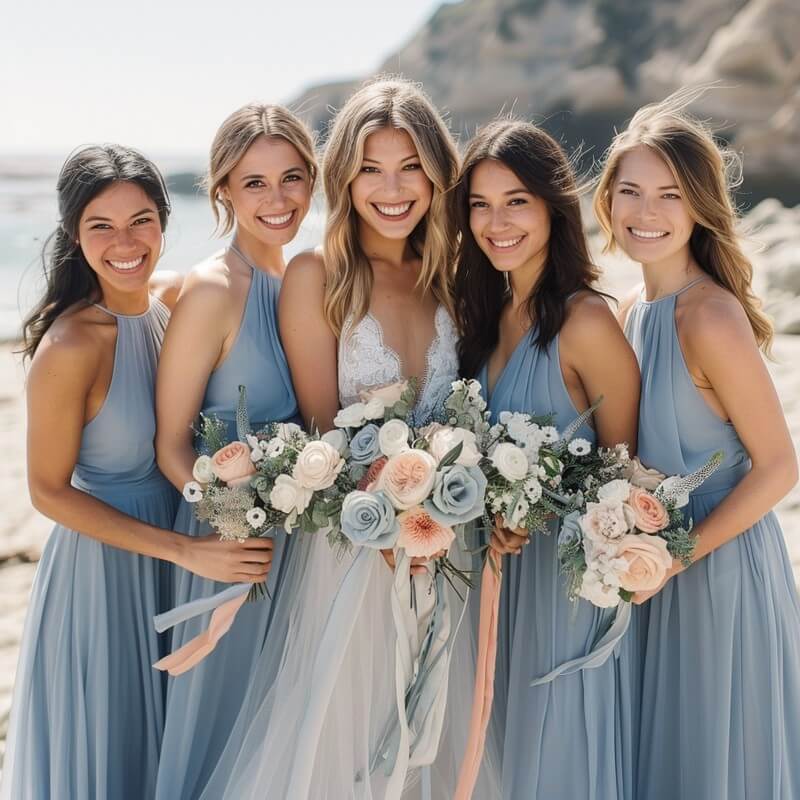 Las damas de honor, son la mano derecha de la novia en su gran día, como es su boda religiosa. Por ello todas deben lucir elegantes y sofisticadas, "sin opacar a la novia"